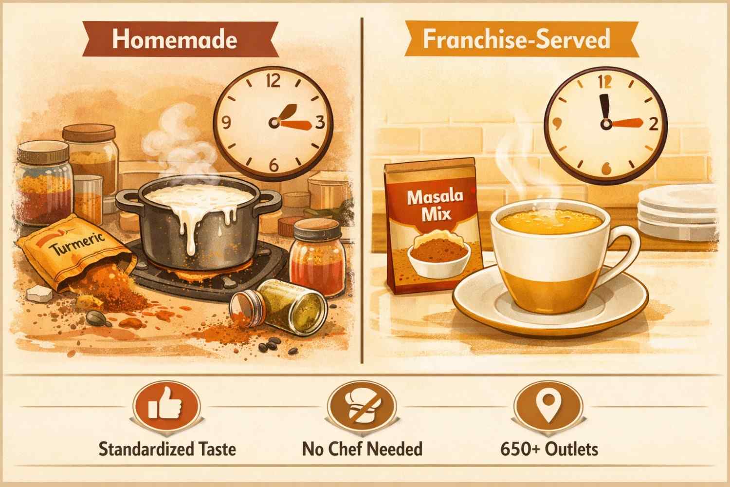 For franchise operators, this is also the operational advantage. A chef-less model means any trained staff member can prepare masala milk to the exact same standard, whether the outlet is in Pune, Delhi, Indore, or Mumbai. No guesswork. No variation between locations. Just consistent quality at scale, which is exactly what customers expect from a branded experience.