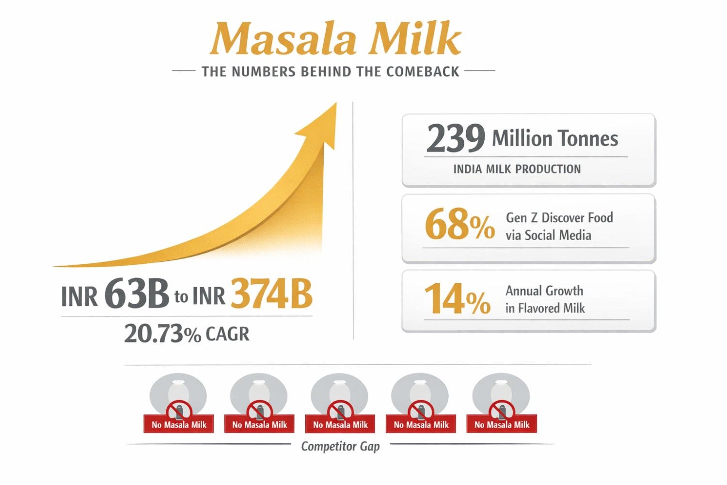 • Post-pandemic wellness shift: Indian consumers, especially across Delhi-NCR and other metros, actively seek natural, preservative-free, immunity-boosting beverages. Masala milk checks every box.